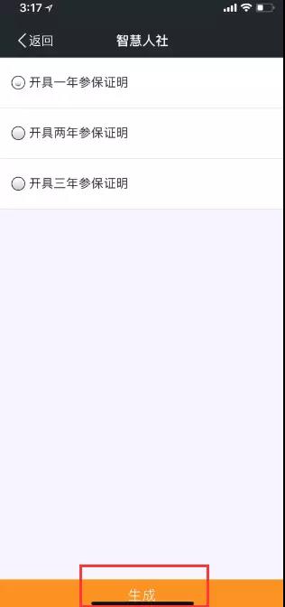 3、選擇需要打印的參保證明,點擊生成,參保證明將以圖片形式生成,可保存至手機后導入電腦打印。